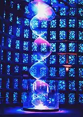 Paul Friedlander became fascinated by art involving the use of movement and light in the late 1960s, when he visited the Cybernetic Serendipity exhibition at the Institute of Contemporary Arts and the Kinetics show at the Hayward Gallery.[5] He was most inspired by the works of the cybernetic artists Nicolas Schöffer (1912) and Wen-Ying Tsai (1928). Since then he has been strongly driven to make kinetic works. In 1983 he made an important discovery of the chaotic properties of spinning string and invented chromastrobic light 'light that changes color faster than the human eye can see'.[6]
