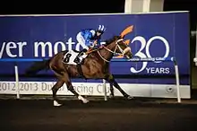 ![]() Paul Hanagan winning UAE 2,000 Guineas on Soft Falling Rain | |