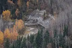 Fort Fork site, located in the Peace River Wildland Provincial Park is a national historic site.[19] The fort was erected in 1792 by the North West Company. Alexander Mackenzie wintered at Fort Fork in 1792 as did David Thompson in 1802. The fort was abandoned in 1805 and has since been almost completed eroded by the Peace River.[20] A flag planted at Fort Fork's former site is all that remains. Mackenzie Cairn was erected on River Lot 19 in the Municipal District (M.D.) of Peace No. 135 in 1929 to commemorate Fort Fork.
