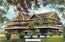 Pegu Club (Burmese: ပဲခူးကလပ်) is a recognized heritage site in Yangon, Myanmar, which was a Victorian-style Gentlemen's club founded in 1871 during the British colonization of Burma. The building was built in 1880 and finished in 1882.[1] Pegu Club used to be a place for British officials to spend their time for a drink or two. It was well known because of its signature Pegu Club Cocktail. In southeast Asia, Pegu Club was an equivalent place to the Royal Selangor Club of Kuala Lumpur and The Tanglin Club of Singapore.[2] Rudyard Kipling, as a young newspaperman, visited Pegu Club when he was in Yangon in 1889. In 1922, Paul Theroux visited Pegu Club in the early 1970s and wrote about it in his book The Great Railway Bazaar.[1] The restoration of Pegu Club building was conducted by KT Group, The Beaumont Partnership, and Yangon Heritage Trust and finished its first phase in 2018.[3]