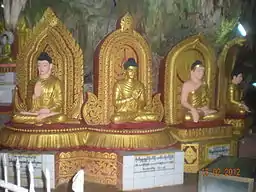 The cave was firstly developed by local Nepalese or Gakhar and later co-opted by the Myanmar government as a tourist attraction in 1990 [2] The cave covers an area of 45 acres, where local plants named Peik Chin, alike long pepper vine used to grow by the mouth of the cave.[3][4] It is estimated to be 230 million to 310 million years old from the formation of limestone and hillocks. After the establishment of shrines with many Buddhist stupas inside the cave, it has also been called Maha Nadamu cave.