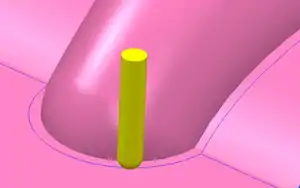 There are several alternative algorithms for generating pencil passes.[1] The method most commonly published in the academic literature involves creating tool surface offsets of the model surfaces and intersecting them to find the common line where the cutter would be in contact with two surfaces at once. An example of this implementation uses the ZMap method described by Park, et al.[2]