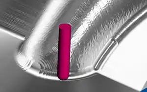 Pencil milling is a cleanup toolpath generated by computer-aided manufacturing (CAM) programs to machine internal corners and fillets with smaller radius tools to remove the remaining material that are inaccessible with larger tools used for previous roughing, semi-finishing, and finishing toolpaths. The name comes from the way that a pencil could naturally be drawn along these corners. It is sometimes called a rolling ball toolpath.
