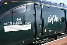 Great Western Railway named Class 802 unit 802008 RNLB Solomon Browne in a ceremony at Penzance TMD on April 13, 2019.[17]