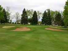 The Penn State Golf Courses are two 18-hole courses located in State College, Pennsylvania, USA, operated by The Pennsylvania State University. The individual 18-hole courses are named after the school colors (blue and white). They, along with their practice facilities, are the home of the men's and women's golf team and all intramural golf activities of the university. The practice facilities include a double-sided driving range with both natural grass and artificial teeing areas, and several putting greens located throughout the facility.