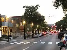 PA 26 enters the borough of State College, where it splits into the one-way pair of West Beaver Avenue northbound and West College Avenue southbound upon intersecting South Buckhout Street. The one-way pair, which carries two lanes in each direction, passes through residential areas. The route heads into the downtown area of State College, which contains businesses and high-rise buildings consisting of mixed residential and commercial uses. Here, PA 26 comes to an intersection with US 322 Bus., at which point West College Avenue becomes the southeast border of the University Park campus of Pennsylvania State University. Following this intersection, the one-way pair continues northeast through the downtown area to the southeast of the university campus. At the intersection with Allen Street to the southeast of Old Main on the Pennsylvania State University campus, the route becomes East Beaver Avenue northbound and East College Avenue southbound. PA 26 heads through more of downtown State College, with the university campus to the northwest, before the one-way pair ends at the High Street intersection. At this point, PA 26 continues northeast on four-lane undivided East College Avenue and comes to an interchange with University Drive that serves the University Park campus of Pennsylvania State University, including Beaver Stadium and the Bryce Jordan Center. Past this interchange, the road heads through woods and leaves State College for College Township, where it gains a center left-turn lane and passes through a mix of homes and businesses, running through the community of Millbrook. The route becomes a four-lane divided highway and reaches an interchange with the US 322 freeway, where the route becomes concurrent with PA 144 Truck.[2][6]