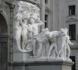 Pennsylvania State Capitol sculpture groups are a pair of larger-than-life, multi-figure groups by American sculptor George Grey Barnard, that flank the west entrance to the Pennsylvania State Capitol in Harrisburg, Pennsylvania. Barnard was commissioned to create the sculptures in 1902, and modeled them in clay and plaster over several years in France.[1] Piccirilli Brothers carved them in white Carrara marble in New York City, and installed the finished sculptures at the Capitol.[1]