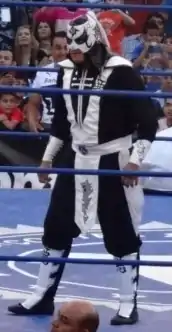 On December 2, 2012 the Dark Dragon persona was abandoned and AAA reintroduced him as Pentagón Jr. at their major year-end show Guerra de Titanes ("War of the Titans"). He was introduced as the arch-enemy of the newly introduced Octagón Jr., just like the original Pentagón had been the storyline arch-enemy of Octagón. Octagón, Octagón Jr. and La Parka defeated Pentagón Jr., La Parka Negra and Silver Cain.[14] Since several wrestler who held the name Pentagon had bad luck in their careers, there is the legend of the name Pentagon being cursed. Pentagón Jr.'s catchphrase, Cero Miedo (Zero Fear) was created to show no fear to the curse.[15] By mid-2013 Octagón Jr. left AAA, leaving Pentagón Jr. without any direction or storyline. On August 18 at Héroes Inmortales VII, Pentagón entered the 2013 Copa Antonio Peña, but was defeated in the first round by El Hijo del Fantasma.[16][17] On March 16, 2014, at AAA's Rey de Reyes show, Pentagón Jr. participated in an eight-man Lucha de Apuestas Domo de la Muerte ("Dome of Death" bet match), but escaped the cage before the end, keeping his mask safe.[18][19][20] At Triplemanía XXII, held on August 17, Pentagón Jr participated in a unification match for both the AAA Fusión Championship and AAA Cruiserweight Championship in a multi-man match that was won by El Hijo del Fantasma.[21][22] On November 17, Pentagón Jr. joined the Los Perros del Mal stable.[23] On December 7, Pentagón Jr. and his new stablemate Joe Líder won the AAA World Tag Team Championship by defeating Los Güeros del Cielo (Angélico and Jack Evans) and Myzteziz and Fénix in a three-way match. They lost the title back to Angélico and Evans on October 4, 2015, at Héroes Inmortales IX.[24]