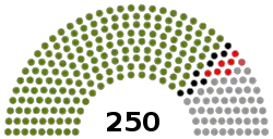 The People's Assembly (Arabic: مجلس الشعب, Majlis al-Sha'ab; French: Assemblée du peuple) is Syria's legislative authority. It has 250 members elected for a four-year term in 15 multi-seat constituencies. There are two main political fronts; the National Progressive Front and Popular Front for Change and Liberation. The 2012 elections, held on 7 May, resulted in a new parliament that, for the first time in four decades, is based on a multi-party system.[2] In 2016 Hadiya Khalaf Abbas, Ph.D., representing Deir Ezzor since 2003, became the first woman elected to be the Speaker.[3][4][5][6] In 2017, Hammouda Sabbagh became the first Orthodox Christian to have held the post.[7]