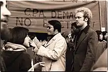 Governor Brown, Willie Brown, Moscone, Dymally, Freitas, and Republican State Senator Milton Marks, were among the attendees of a large testimonial dinner in Jones' honor in September 1976.[87][88] Willie Brown served as master of ceremonies and introduced Jones, stating, "Let me present to you what you should see every day when you look in the mirror in the early morning hours ... Let me present to you a combination of Martin King, Angela Davis, Albert Einstein ... Chairman Mao."[85][89][90]