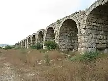 Perga is today an archaeological site and a tourist attraction. There were numerous excavations and discoveries since 1946.[23] Ancient Perge, one of the chief cities of Pamphylia, was situated between the Rivers Catarrhactes (Düden Nehri) and Cestrus (Aksu), 60 stadia (about 11.1 kilometres (6.9 mi)) from the mouth of the latter; the site is in the modern Turkish village of Murtana on the Suridjik sou, a tributary of the Cestrus, formerly in the Ottoman vilayet of Konya. Its ruins include a theatre, a palaestra, a temple of Artemis and two churches. The temple of Artemis was located outside the town.[14] Many of the coins struck in the city portrayed both the goddess and her sanctuary.[24]