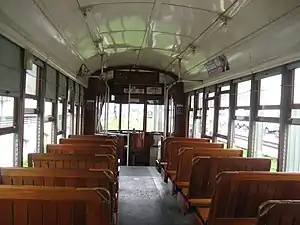 In 1940, Perley A. Thomas retired (at age 65), remaining as president and design consultant.[2][4] During World War II, Thomas Car Works was active in war production, shifting from buses to bodies for the GMC CCKW 2½-ton 6x6 truck.[2] As an additional means of revenue, the company renovated and repaired its former streetcars.[2] Although streetcars had largely fallen out of favor, the suspension of domestic vehicle production was also applied towards transit vehicles as well as private automobiles; some cities had retained the networks for the operation of streetcars into the 1940s.