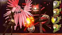 Each Persona game also includes unique elements. In Persona, battles take place on a grid-based battlefield, with characters' and enemies' movements dictated by their placement on the battlefield.[63] This system was abandoned for the Persona 2 games: the party has free movement across the battlefield, and is assigned a set of moves which can be changed in the menu during and in between battles.[14][71] In Persona and Persona 3, there is a lunar phase tied to gameplay, time progression, and the plot. In Persona 4, this was changed to a weather-based system, where changes in the weather keyed to the story affected enemy behavior.[65][72][73] Persona 5 introduces elements such as platforming and stealth gameplay to dungeon exploration.[62][68][74] The All-Out Attack can be initiated in a "Hold-Up" session, triggered when all enemies are knocked down.[75]