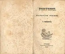 Pervenci (English: Premières), subtitled različne piesme, is a collection of 35 poems written by Croatian poet Petar Preradović. They ware first published in year 1846 in Zadar.