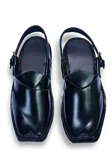 Peshawari Chappal (Pashto: پېښوري څپلی, Urdu: پیشاوری چپل) is a traditional footwear of Pakistan, worn especially by Pashtuns in the Khyber Pakhtunkhwa region. The shoe takes its name from the city of Peshawar,[1] where it originates from. While chappal is the word for flip-flops, or sandals in Urdu. People in Peshawar -- the locals -- call the Peshawari Chappal Tsaple (Pashto: څپلی ). Peshawari Chappal is worn by men casually or formally, usually with the Shalwar Kameez dress. Because of its comfort, it is used in place of sandal or slipper in Pakistan.