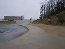 ![]() Location of Petit Fort (signs on the right) on Lake Michigan, which is south of the Bathhouse | |