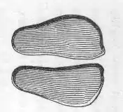 A typical example of a possibly re-used concavity is the footprint on Dunadd which some locals at one time thought was a cast for a bronze axe head.[2] A pseudofossil of what looks like a footprint of a human foot wearing a sandal with a trilobite fossil in the print has been quoted by anti-evolutionists to show that modern man did walk the earth at this time, around five hundred million years ago. The Burdick Print[3] (or Burdick Track) from Glen Rose, Texas, USA, is claimed by some creationists to be part of a "giant man track", supposedly produced by a giant walking alongside dinosaurs.