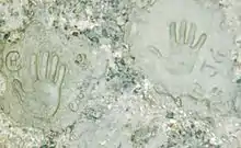 St Victor Petroglyphs Provincial Park,[20] Saskatchewan, Canada, features footprint petrosomatoglyphs of bison, deer, elk and antelope.