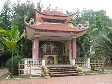 The Thuong Temple is approached from Trung Temple over a pathway, which has 102 brick steps. The kings worshipped the Sun God, the Earth God, the Rice God, and Saint Dong. At this temple location, the last ruler of the 18th Hung dynasty handed the reins of his kingdom to Thục Phán, who established a memorial stone pillar and took an oath that he would maintain the temple and also the inheritance of the Hung's family. King Hung's tomb is the tomb of a ruler of the 6th Hung dynasty. It is claimed the 6th dynasty Hung king, after defeating the intruders to his country, removed his dress and hung them on the branch of the kim giao tree. He soon after died right at that location. Giếng Temple is at the foot of the mountain where an 18th dynasty king's daughters, Ngọc Hoa and Tiên Dung, worshipped. They used their reflection in the water surface of the well to manicure their hair.[3]