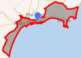 listen)) is the capital of Bình Thuận Province on the southeast coast in Vietnam. While most of the inhabitants live in the city center, the others live in the four urban coastal wards, extending from Suối Nước beach in the northeast towards cape Kê Gà in the southwest.
