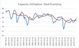 In his paper How Far Can We Push This Thing?[7] Pilkington develops a novel framework for estimating and understanding potential output. Pilkington argues that contemporary approaches to potential output either involve crude trend estimates that simply assume that economies usually operate at full capacity or they utilize the flawed NAIRU framework that has been disproved in practice in the past. He advocates a more intuitive and statistically-grounded approach to estimating potential output. Pilkington points out that statistics on capacity utilization are readily available for most countries. He argues that "the true constraint on economic growth at any moment in time is the utilisation rate of plant and machine" and so we should simply estimate the sensitivity of GDP to capacity utilization and in doing so derive an estimate of potential output.