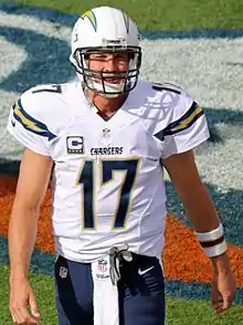 Philip Michael Rivers (born December 8, 1981) is a former American football quarterback who played in the National Football League (NFL) for 17 seasons, primarily with the Chargers franchise. He played college football at North Carolina State and was selected in the first round of the 2004 NFL Draft as the fourth overall pick by the New York Giants, who traded him to the San Diego Chargers during the draft. Rivers was a member of the Chargers for 16 seasons and played his final season for the Indianapolis Colts.