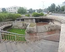 A section of the "western" aqueduct, which is considerably more massive, has been partially restored on Komatevsko Shose. Piers are also visible at the Roman stadium. Recent excavations have revealed more of the piers dating from the 2nd c. AD.[40]