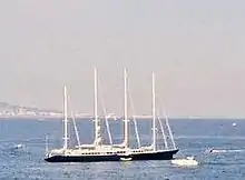 Enigma (formerly Phocea) is a sailing yacht that was built at Toulon, France, by DCAN in 1976.[1] She is 246 feet long (75 meters) and can cruise at 11 knots under sail with the right weather.[2] Like many yachts, she has undergone a number of refits, a major one having been in 2000 in Germany.[3] She can handle 12 guests supported by a crew of 16 sailors.[4] Enigma is a schooner with four masts.[5] Phocea was originally built for speed, and she cross the Atlantic in 8 days and achieved speeds of 30 knots under sail.[6] The yacht has also been converted more for luxury and used on the charter market.[7]