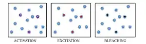Photo-activated localization microscopy (PALM or FPALM)[1][2] and stochastic optical reconstruction microscopy (STORM)[3] are widefield (as opposed to point scanning techniques such as laser scanning confocal microscopy) fluorescence microscopy imaging methods that allow obtaining images with a resolution beyond the diffraction limit. The methods were proposed in 2006 in the wake of a general emergence of optical super-resolution microscopy methods, and were featured as Methods of the Year for 2008 by the Nature Methods journal.[4] The development of PALM as a targeted biophysical imaging method was largely prompted by the discovery of new species and the engineering of mutants of fluorescent proteins displaying a controllable photochromism, such as photo-activatible GFP. However, the concomitant development of STORM, sharing the same fundamental principle, originally made use of paired cyanine dyes. One molecule of the pair (called activator), when excited near its absorption maximum, serves to reactivate the other molecule (called reporter) to the fluorescent state.
