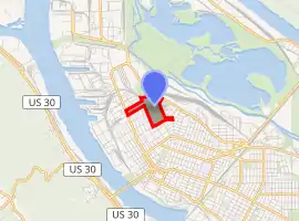 The Southwest corner has Pier Pool, which is open in the summer season.[6] The park was dedicated in 1940, including the pool. The first swimmer was the reigning Junior Rose Festival Queen.[7] The pool was closed by the City Council, but received federal funding in Spring 2007 to be reopened in 2008.[8]