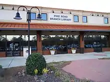 The Pike Road Public Library of the Montgomery City-County Public Library is located in Pike Road.[7][14] It is located in the Pike Road Station shopping center near the intersection of Pike and Vaughn Roads.[15]