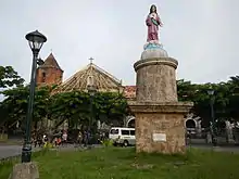 The first missionaries in Pila were Augustinians who administered their missions from Bay.[3] The Franciscans then started to evangelize the townsmen of Pila through Fray Juán Portocarrero de Plasencia and Fray Diego de Oropesa de San José (known as the Apostles of Laguna and Tayabas[1]) in 1578.[2][4] They started to established "Villa de Pila" and soon built a church out of cane, dedicated to St. Anthony of Padua.[5] From being a reducción, Pila was elevated to a parish on the feast of its titular on June 13, 1581, with Fray Oropesa as its pastor (parish priest) until 1583.[1] With its establishment, Pila became the first church dedicated to St. Anthony in the country.[6] The Spanish colonial authorities gave the Pila the title, La Noble Villa de Pila. In 1599 permission was given by the Superior Gobiernoto build a stone church.[5] In 1617 the stone church and rectory was finished in Pagalangan (place of reverence).[5]