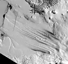 Pine Island Glacier (PIG) is a large ice stream, and the fastest melting glacier in Antarctica, responsible for about 25% of Antarctica's ice loss.[3] The glacier ice streams flow west-northwest along the south side of the Hudson Mountains into Pine Island Bay, Amundsen Sea, Antarctica. It was mapped by the United States Geological Survey (USGS) from surveys and United States Navy (USN) air photos, 1960–66, and named by the Advisory Committee on Antarctic Names (US-ACAN) in association with Pine Island Bay.[1][4]