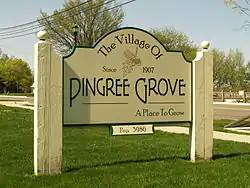 Pingree Grove is a village in Kane County, Illinois, United States. The population was 124 at the 2000 census. However, with rapid development in the following years,[3] the 2010 census indicated 4,532 residents,[4] and as of 2019 the estimated population was 9,874.[5]