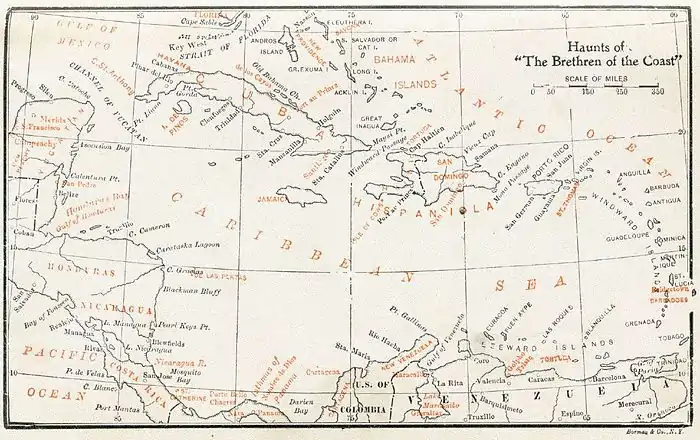 Probably the least qualified pirate captain ever to sail the Caribbean, Bonnet was a sugar planter who knew nothing about sailing. He started his piracies in 1717 by buying an armed sloop on Barbados and recruiting a pirate crew for wages, possibly to escape from his wife. He lost his command to Blackbeard and sailed with him as his associate.[10] Although Bonnet briefly regained his captaincy, he was captured in 1718 by a privateering vessel that was employed by South Carolina.[10]