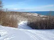 Intermediate difficulty slopes. Generally, Intermediate trails are groomed, with grades ranging from 25% to 40%.[3] Blue Square trails make up the bulk of pistes at most ski areas. |