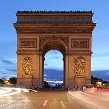 ![]() The Place Charles de Gaulle and Arc de Triomphe, with La Défense in the background | |