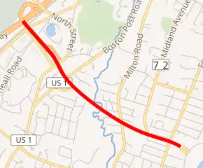 The entire route is in Rye, Westchester County. All exits are unnumbered.