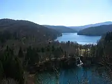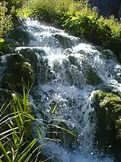 The Plitvice Lakes originate in the south of the park area at the confluence of Bijela Rijeka (English White River) and Crna Rijeka (English Black River). These rivers originate south of the municipality of Plitvički Ljeskovac and unite at one of the bridges in this village. From this place onwards to the lakes, the water masses are referred to as Matica (English for water current, can also mean root or origin). At the bay of Liman (also called Limun), a part of Prošćansko jezero, another little river flows into the lakes. This river is fed by permanent springs; the water quantity, however, varies. Temporarily, water from other, usually dead creeks reaches Prošćansko jezero from the west.[17]