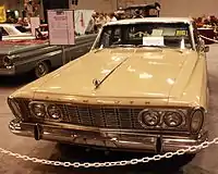 The overall design changed, with the grille losing chrome but gaining two vertical stacked headlights on each side. All rode on new 119 in (3,023 mm) wheelbases (121 in (3,073 mm) for the wagons)—1 in (25 mm) longer than before. The 426 "street wedge" V8 was introduced, rated at 385 hp (287 kW) and finally street-legal.[1]