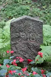The Pohjois-Haaga mass grave is now a protected site that belongs to the city of Helsinki. The site has a memorial erected in 1919, made by stone workers of the city, with no text but the year 1918 inscribed. There is also a metal fence around the grave. In May 1996, the city of Helsinki added a plaque with information of the events leading to the creation of the mass grave.[1][4][6] With regard to the fate of Vilms, the plaque contained numerous errors.[4] In December 2015, a new plaque was placed at the grave, with no mention of Vilms or his retinue. According to the new plaque, 28 men had been buried in the grave, when there were a total of 45 or 46 men executed.[7]