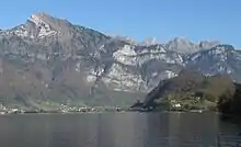 The wingsuit flying sequence which is notably the most dangerous stunt in the film was filmed in Walenstadt, Switzerland and required five stuntmen (including the cameraman) flying in formation, while all weaved through narrow mountain passes, one of which is called "The Crack", all at a speed of over 145 miles per hour (233 km/h).[6][27] The production canceled planned flights on a number of days because of poor weather conditions, eventually completing it only after two weeks in August 2014.[6][25] Core brought in Jeb Corliss, a professional sky diver, to help coordinate the scene and handpick wingsuit athletes to perform the stunt.[22] Corliss and his team picked the best wingsuit pilots in the world, who have all made over 17,000 sky dives and have had 20 years of experience, including one thousand BASE jumps and thousands of wingsuit jumps each, to perform the jump.[9] Corliss himself was going to be one of the fliers, but was not able to be, because he was recovering from a knee surgery after he tore his anterior cruciate ligament prior to the filming, while testing a suit.[28] The five fliers includes two times World Wingsuit League champion and four times Guinness World Records holder Jhonathan Florez (cameraman, who died in July 2015),[28] Red Bull Air Force former manager Jon DeVore (portrayed Utah), who previously worked on the wingsuit sequence for Transformers: Dark of the Moon, and served as the aerial coordinator,[9] Mike Swanson (Bodhi), Julian Boulle (Grommet), Noah Bahnson (Roach), and James Boole.[25] DeVore knew that the sequence was going to be difficult to enact, especially in supertight, choreographed formations. Corliss himself was familiar with the place since he made a jump in 2011 from a peak just outside the Swiss town. A video of the jump titled "Grinding the Crack" uploaded to YouTube has been watched over 30 million times.[9]