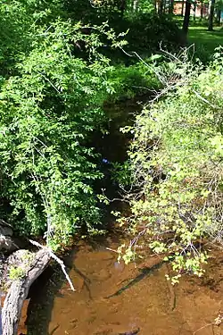 A pond known as Mud Pond is located in the watershed of Pond Creek. It is on a tributary of Pond Creek, not on the main stem itself.[6] There are patches of wetland at the headwaters of the creek.[3]