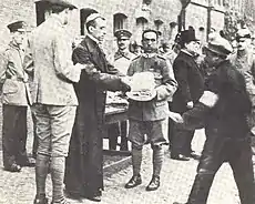Almost from the beginning of the war, November 1914, Benedict negotiated with the warring parties about an exchange of wounded and other prisoners of war who were unable to continue fighting. Tens of thousands of such prisoners were exchanged through his intervention.[22] On 15 January 1915, he proposed an exchange of civilians from the occupied zones, which resulted in 20,000 persons being sent to unoccupied Southern France in one month.[22] In 1916, Benedict managed to hammer out an agreement between both sides by which 29,000 prisoners with lung disease from the gas attacks could be sent into Switzerland.[31] In May 1918, he also negotiated an agreement whereby prisoners on both sides with at least 18 months of captivity and four children at home would also be sent to neutral Switzerland.[22]