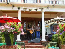Porchfest music festivals began as a means for neighbors and local community members to highlight their music on front porches.[2] The concept was to find musicians and porches on which for them to play. The original event in Ithaca, New York, started with about 20 musicians but has since grown to over 100.[3]