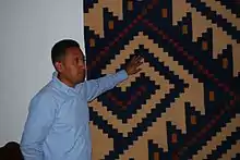 Porfirio Gutierrez is a Mexican artisan and advocate specializing in the weaving traditions of Teotitlan del Valle, Oaxaca. He comes from a long line of traditional Zapotec weavers, and the family still is dedicated to this art. Although Gutierrez grew up with the craft and worked looms starting at age 12; at age 18, he went to work in the United States, staying for ten years. Upon returning to Oaxaca, he rediscovered his heritage and the importance of weaving and has since worked to create and promote the making of wool rugs using traditional materials and techniques. In particular he promotes the use of natural dyes, in which his sister Juana specializes. Gutierrez divides his time between Oaxaca and California, not only to sell his family's wares but also to speak and research about weaving and Zapotec culture. This has included a collaboration with the National Museum of the American Indian (Smithsonian).
