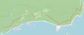 The 14.6 kilometres (9.1 mi) long main line ran from Port Craig in southerly direction, parallelly to the coast, to the Wairaurahiri River[1] In addition, there were 9.8 kilometres (6.1 mi) of spur lines.[2] The main line was surveyed with at maximum grade of 33 ‰ (1 in 29.5) and deep cuts and high trestle bridges much more elaborately than similar tramways.[3]
