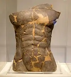 This sanctuary, among the most ancient and venerated on all of Etruria, was outside of the city and on a road leading to the Tyrrhenian coast and the Veii salt flats. Its most ancient nucleus was tied to the cult of the goddess Minerva and a small temple, a square altar, a portico and stairs from the road were built in about 530-530 BC in her honour. The three-cell temple with the polychrome terracotta decorations was erected in about 510 BC in the western part of the sanctuary.[2] Adjacent to the temple there was a great pool with a tunnel and a fence that enclosed the sacred woods. The temple was in honour of the god Apollo in his prophetic oracle aspect inspired after the Delphi model to which purification ceremonies were tied. Heracles, the hero made god dear to tyrants, and maybe also Jupiter, whose image we have to imagine on the central wall of the temple were tied to Apollo.