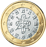 Portuguese euro coins show three different designs for each of the three series of coins. However, they are quite similar in that all contain old Portuguese royal mints and seals within a circle of seven castles and five escutcheons with silver bezants (all similar to what can be seen in the coat of arms and flag of Portugal) and the word "Portugal". Also featured in the designs, all done by Vítor Manuel Fernandes dos Santos, are the 12 stars of the EU and the year of minting.