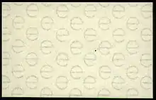 The Irish overprinted stamps came, as supplied from the printers in London, with a watermark of the Royal Cypher of George V. The first Irish watermark was a stylised design of the two overlapping letters 's' and 'e' making an 'se' watermark representing the name of the country Saorstát Éireann. This watermark was discontinued around 1940 when the country's name changed to Éire (Ireland); it was replaced with e watermark paper to represent Éire.[22] Stamps of the period may have the watermark in any of several states of inversion and rotation attributable to the way the paper was fed into the printing machines.[42]